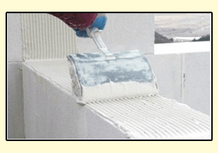 Application apply the mixed paste over the surface and comb through trowel followed by notched trowel to make a levelled uniform bed of required thickness, place the block over the bed and gentle tap.